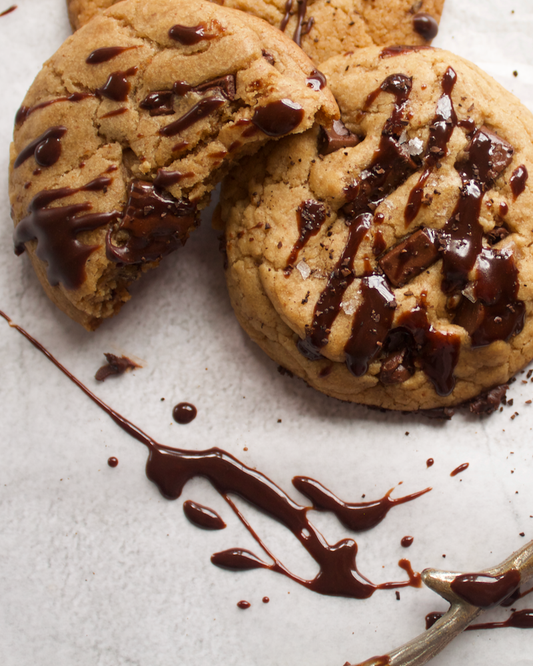 CREATIVE FLAVOR COMBOS ARE OUR JAM AND WE FOCUS ON BAKING TECHNIQUES TO GET THE MAX FLAVOR OF NOSTALGIC CLASSICS, LIKE OUR BURNT "BUTTER" SALTED CHOCOLATE CHUNK COOKIE. GET A LITTLE DANGEROUS AND TRY THE SIGNATURE "BURNT" COOKIE, BAKED WITH A BLEND OF BLACK COCOA AND BLACK COFFEE INFUSION. EACH IS HANDCRAFTED WITH PLANT-BASED INGREDIENTS LIKE ALMOND BUTTER, COLD-PRESSED COCONUT OIL, UNREFINED SUGAR, UNBLEACHED FLOUR AND LOCALLY-SOURCED COFFEE AND TEA INFUSIONS.