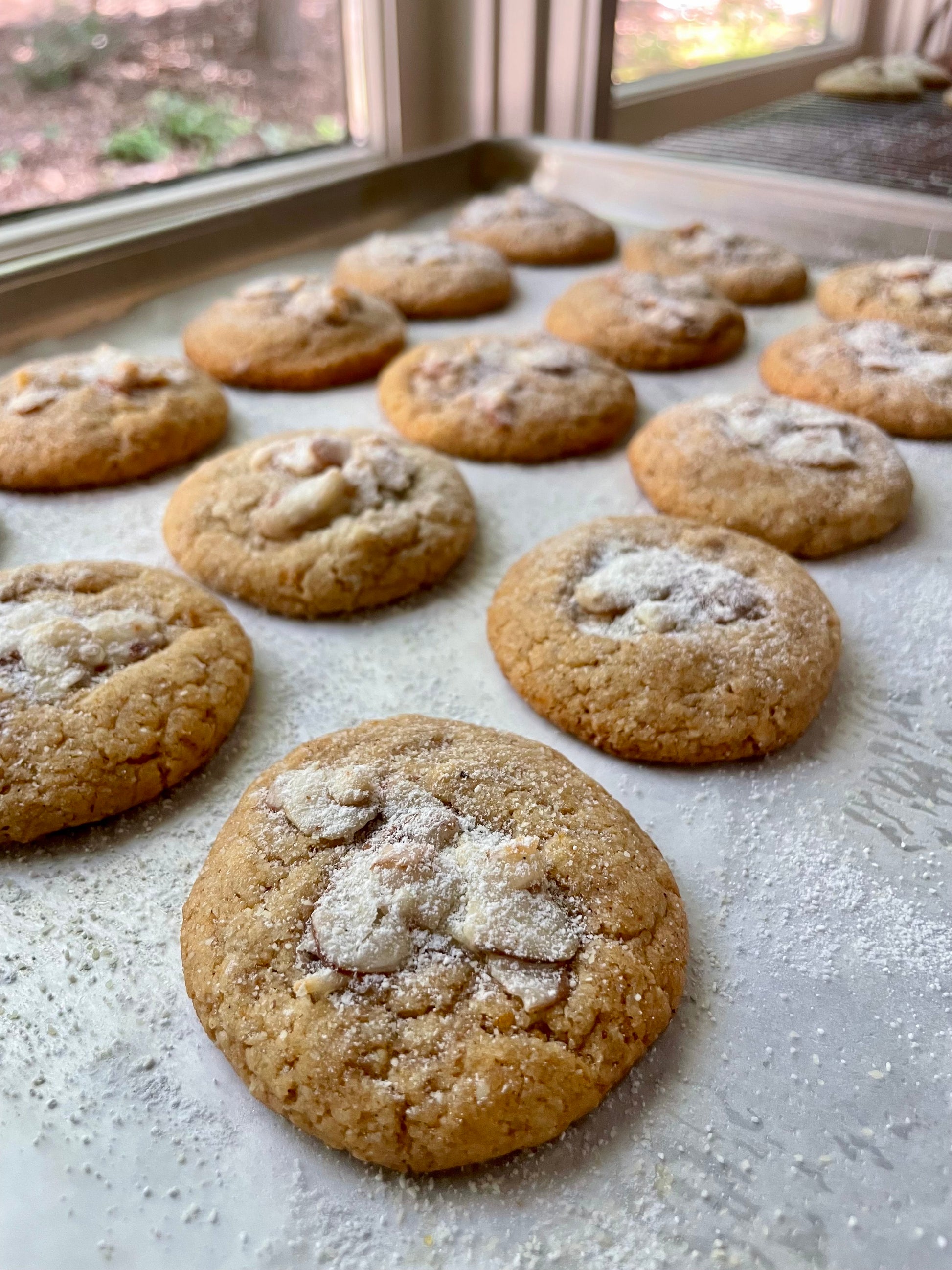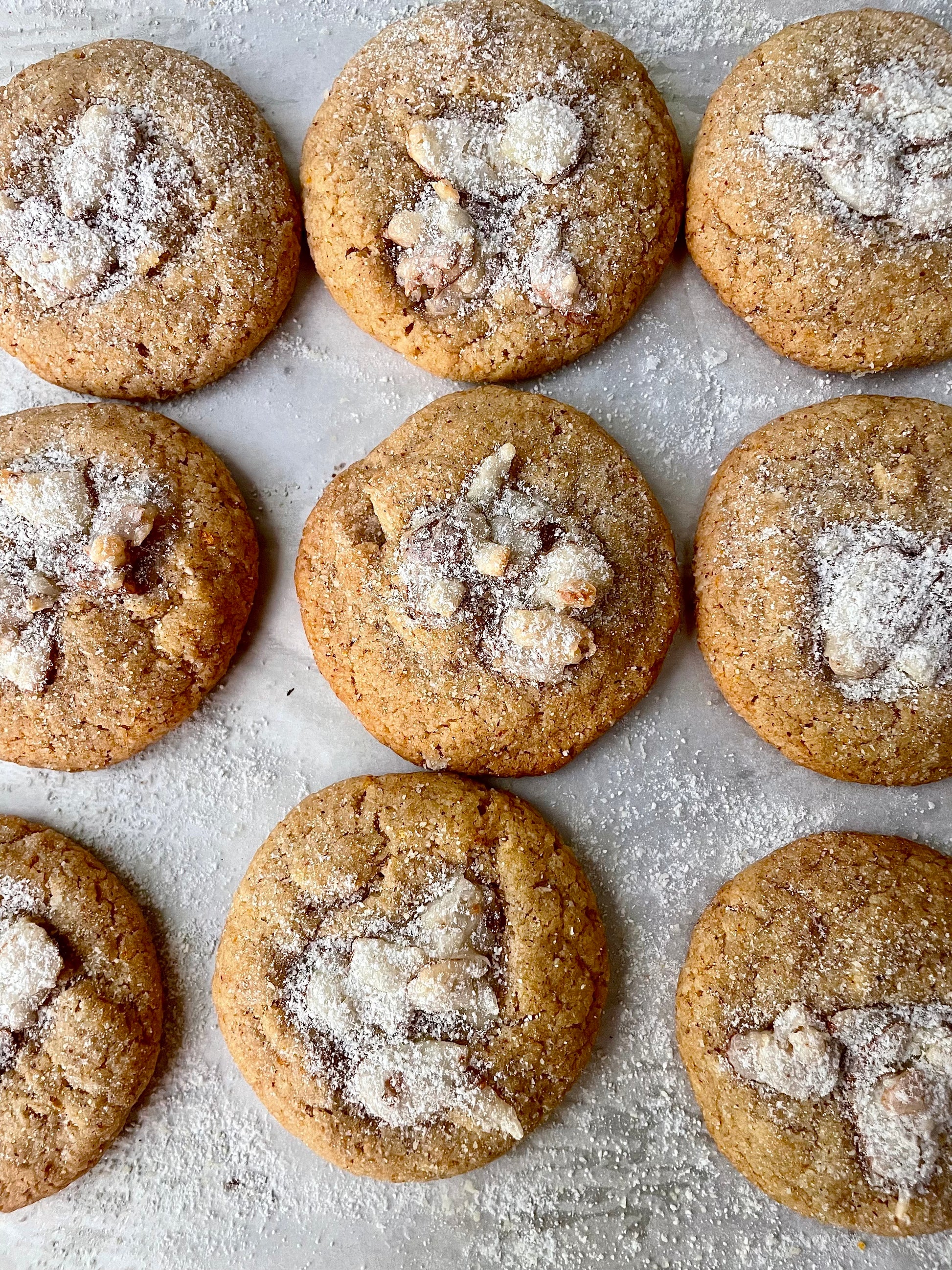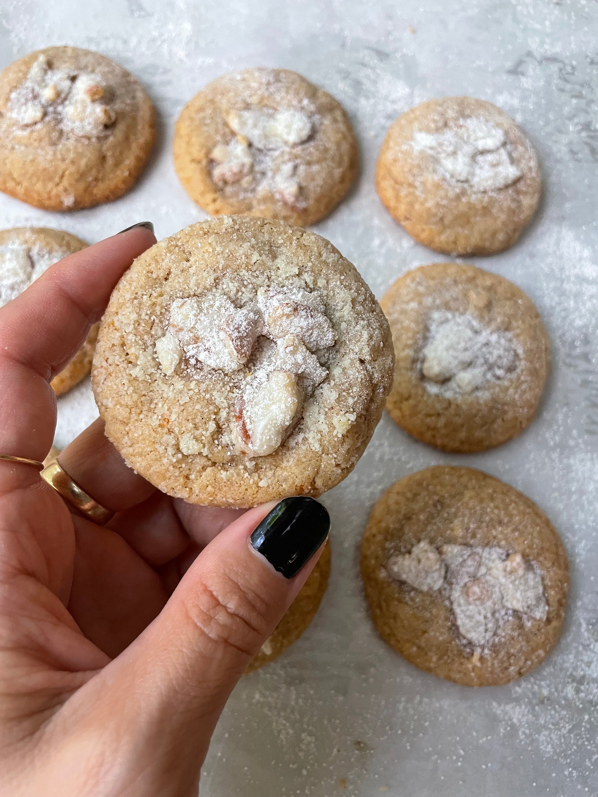 INGREDIENTS YOU CAN PRONOUNCE- UNBLEACHED WHEAT FLOUR, UNREFINED BROWN SUGAR, ALMOND FLOUR, ORGANIC COLD-PRESSED COCONUT OIL, ROASTED ALMOND BUTTER, ORGANIC CASHEW YOGURT (CASHEWS, CORNSTARCH, COCONUT CREAM, CAROB BEAN GUM, AGAR-AGAR, LIVE CULTURES), ORGANIC CANE SUGAR, BAKING SODA, CREAM OF TARTAR, CORNSTARCH, ALMOND EXTRACT, SEA SALT.